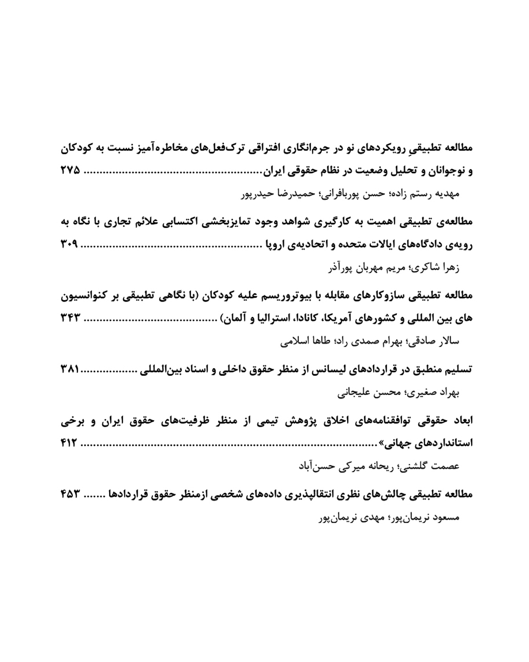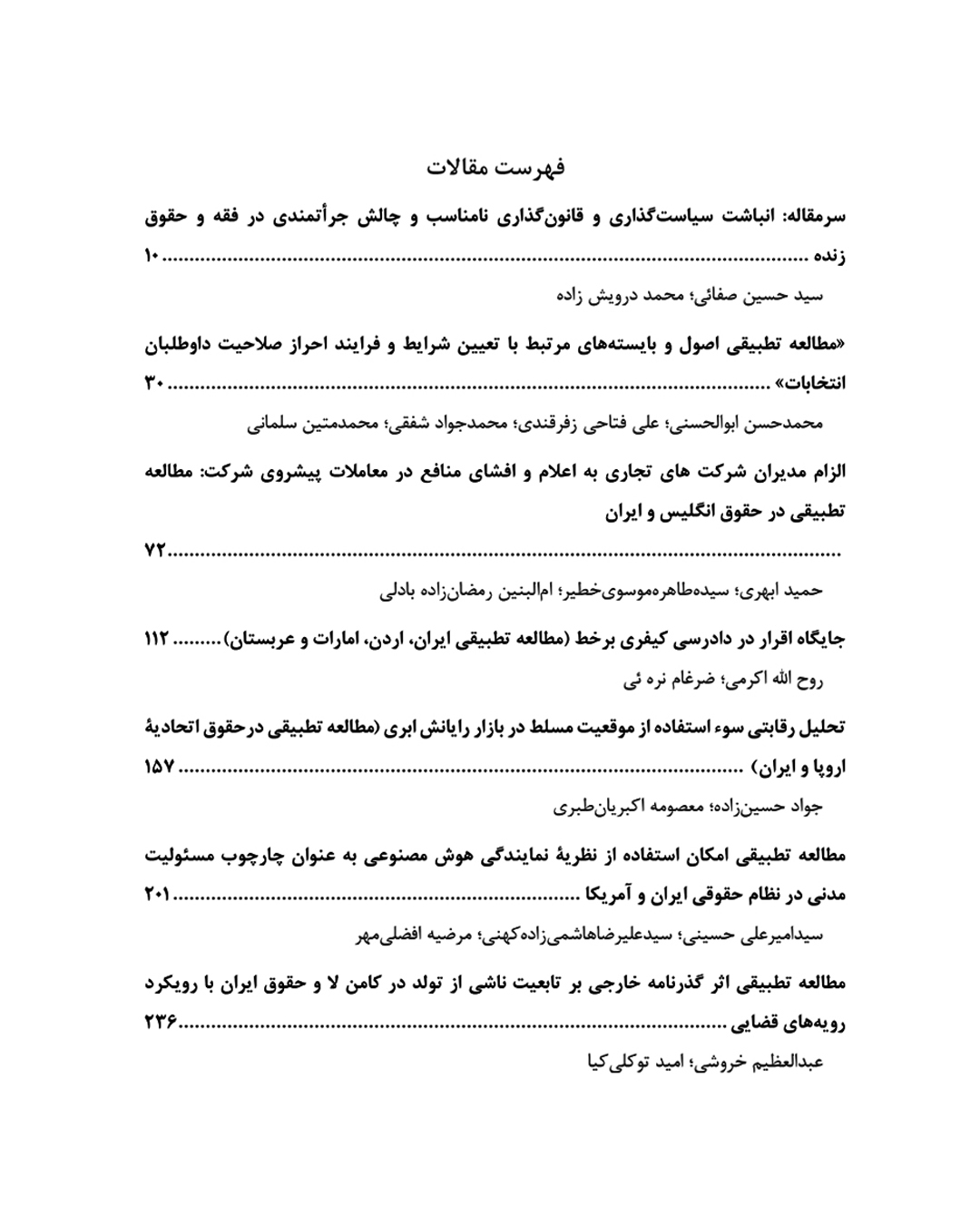فهرست مقالات این شماره فصلنامه تحقیق و توسعه در حقوق تطبیقی به شرح ذیل است: